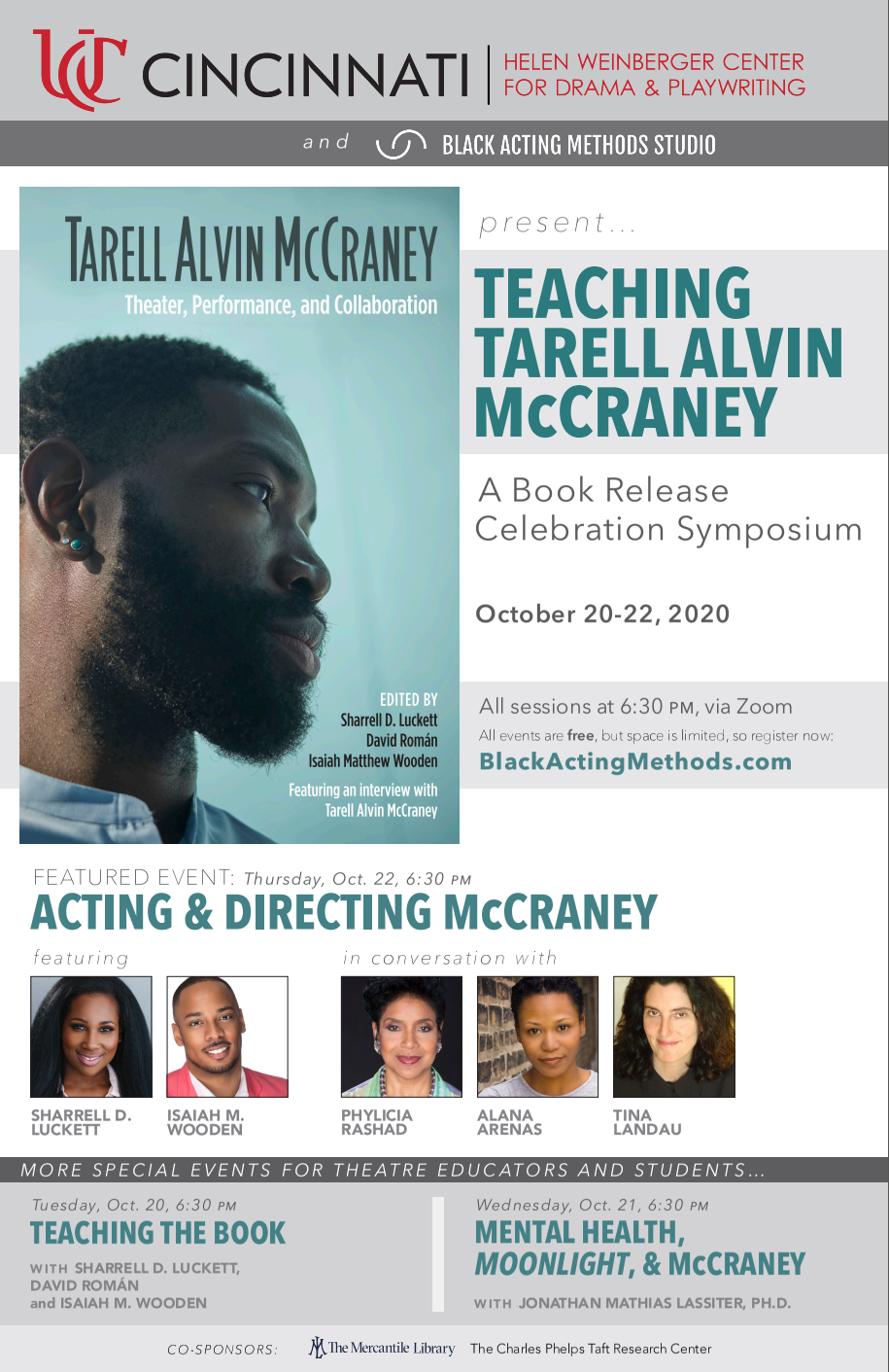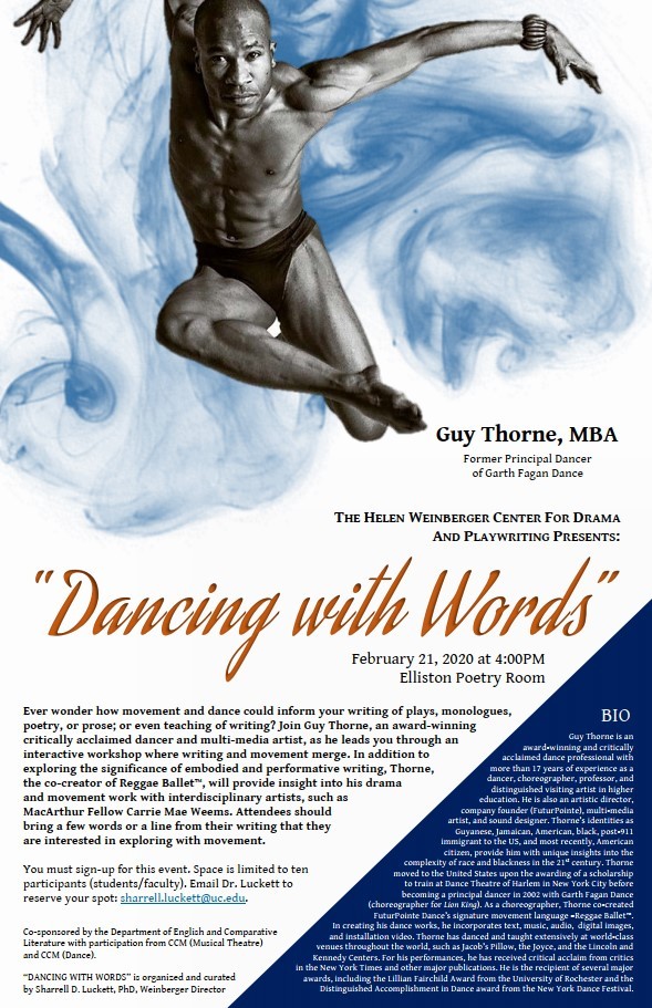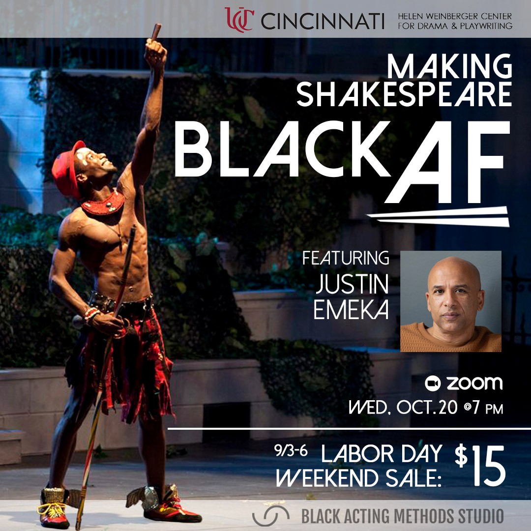 Co-sponsored by the Black Acting Methods Studio, CCM (Acting), the Cincinnati Black Theatre Company (CBTC), the Department of English and Comparative Literature, and The School for Creative and Performing Arts (SCPA).