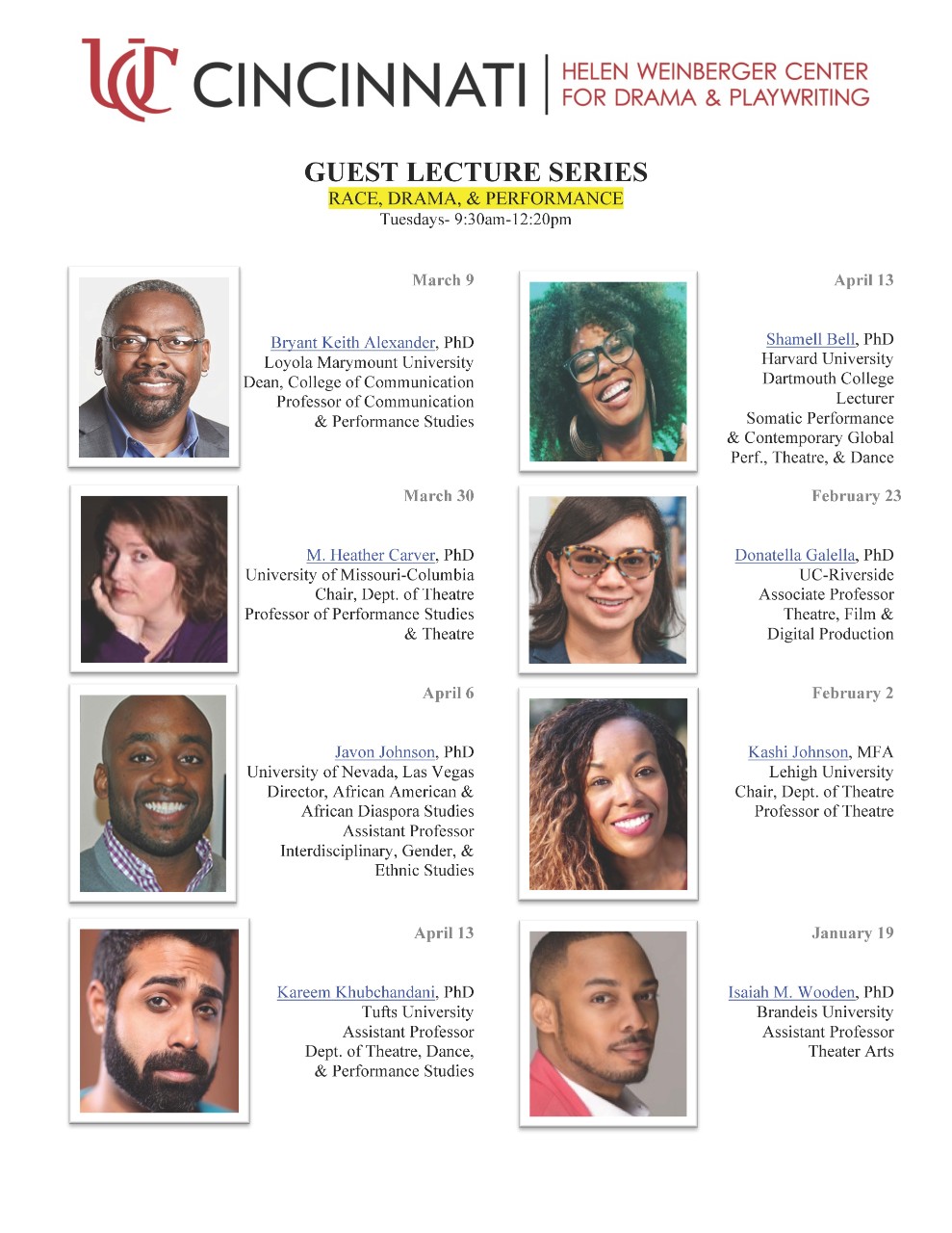 For links to attend events, please contact Dr. Sharrell Luckett, lucketsl@ucmail.uc.edu.