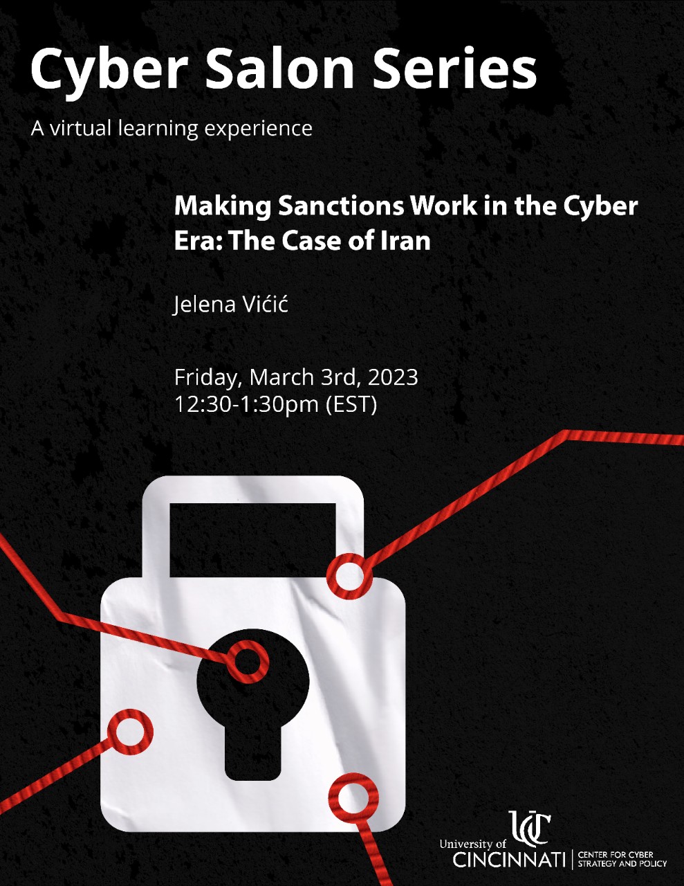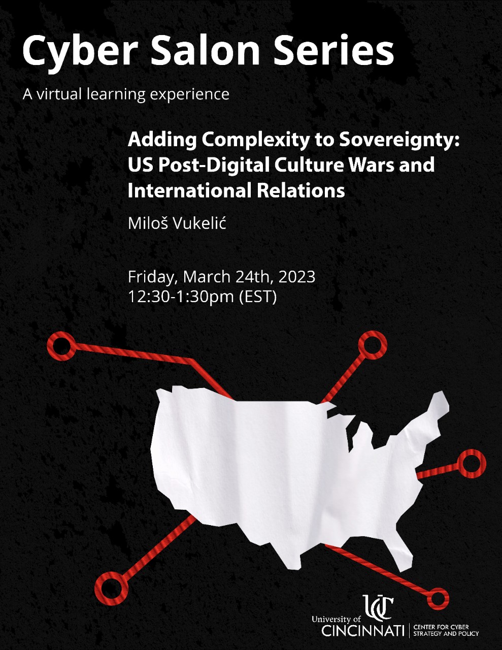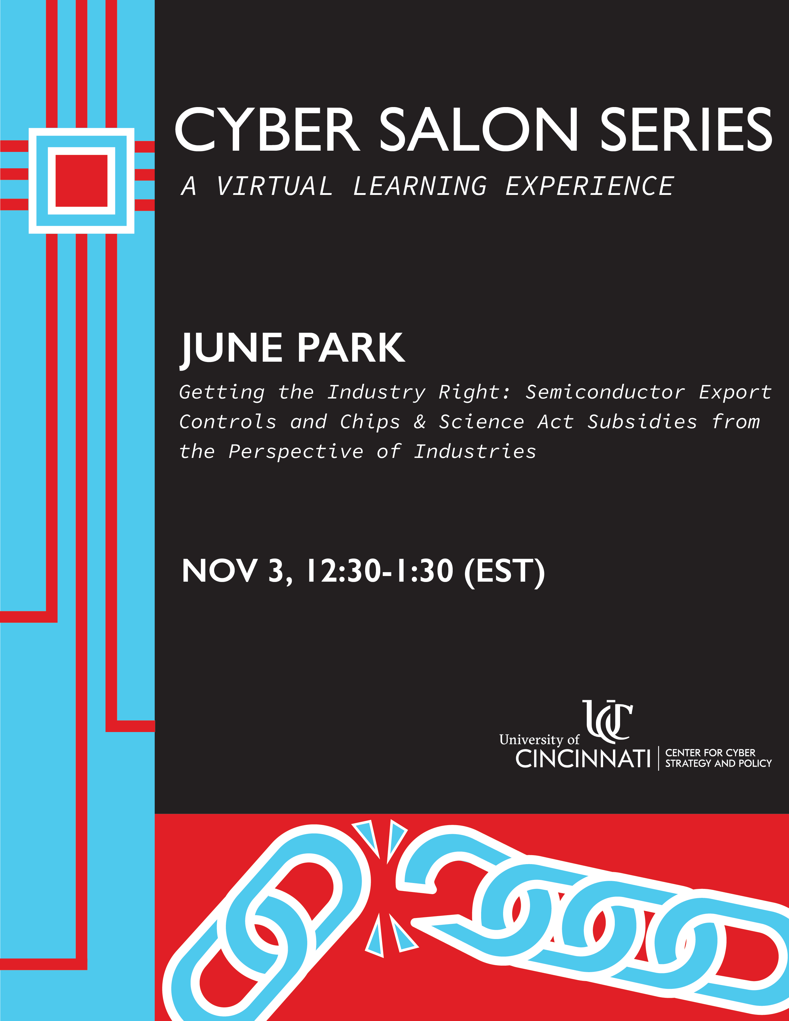 The Center for Cyber Strategy and Policy (CCSP) hosts public discussions on current cybersecurity events and research. Detailed information, event links, and flyers for upcoming and previous Cyber Salons can be found below.