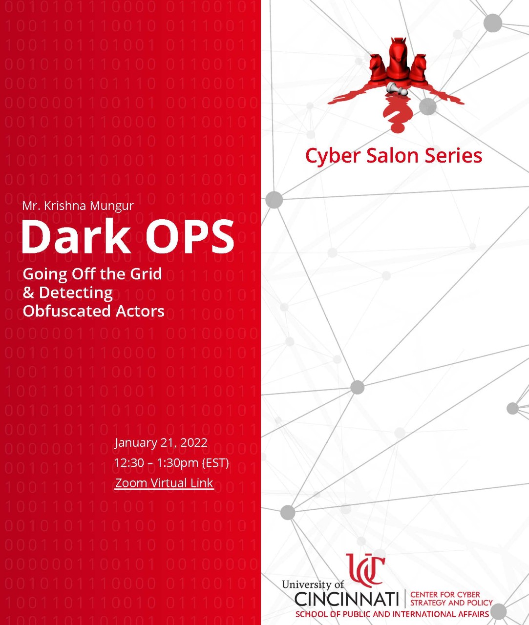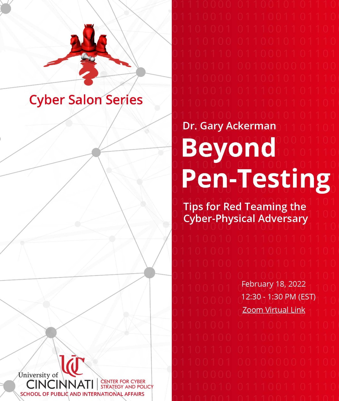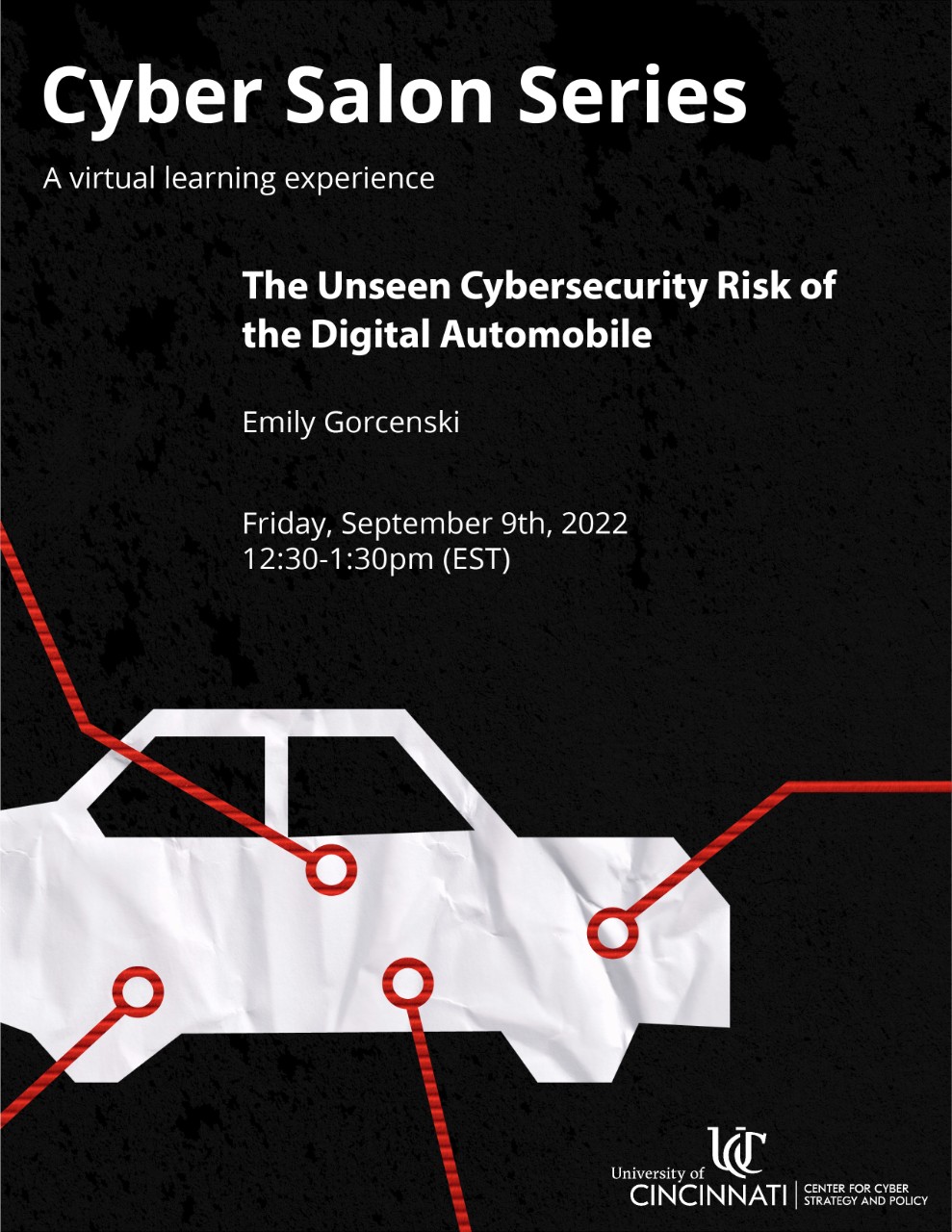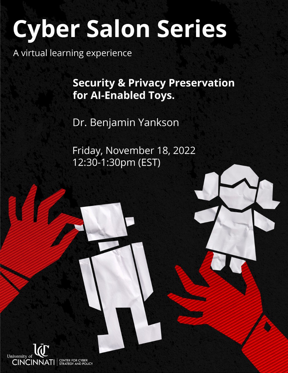 The Center for Cyber Strategy and Policy (CCSP) hosts public discussions on current cybersecurity events and research. Detailed information, event links, and flyers for upcoming and previous Cyber Salons can be found below.